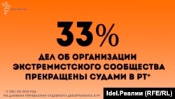 С 2011 по 2015 год в суды Татарстана поступило 20 уголовных дел по обвинению в организации экстремистского сообщества. Согласно статистике Управления судебного департамента в Татарстане, каждое третье из них было прекращено.