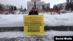 Сегодня, 21 февраля, активисты "Союза пострадавших клиентов Татфондбанка и Интехбанка" вышли на серию одиночных пикетов на площадь 1 мая у Спасской башни Казанского кремля и на площадь Свободы перед кабинетом министров Татарстана. Об этом "Idel.Реалии" сообщила член Союза Александра Юманова.