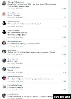 Кто-то написал слово "чупряк", что по-татарски означает "тряпка". Кто-то вопрошает: "Хватает совести доброе утро желать?" Кто-то пишет по-татарски: "Әйт инде Татфондбанк турында берәр сүз. Зинһар өчен!" ("Ну скажи уже о Татфондбанке хоть слово. Пожалуйста!").