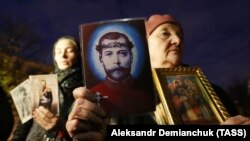 Накануне премьерный показ фильма "Матильда" прошел в Мариинском театре в Санкт-Петербурге. К театру также пришли около 15 противников показа "Матильды", которые держали в руках портреты Николая II и иконы с его изображением.