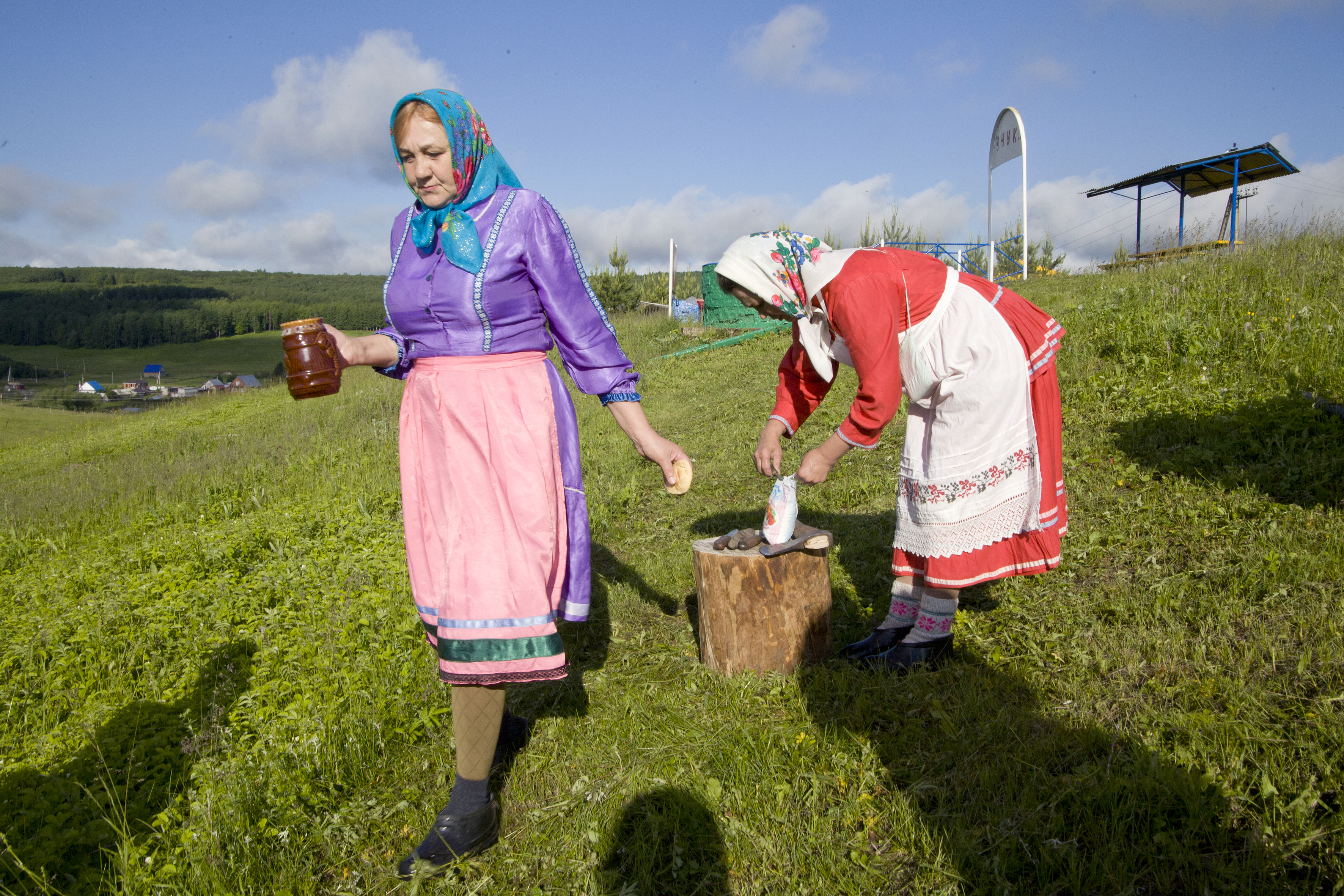 — В советское время скрытно бабушки приходили и делали моление. А с 90-х годов открыто, в виде фестиваля, — рассказывает Галина Бикбова. — К нам [Айрат] Хайруллин (мэр Альметьевска и глава района — ред.) сам приезжает. Мы в Челябинск, Екатеринбург выезжали с этим обрядом, показывали. Там чувашские центры есть. Целый парк был народу, каши не хватило! Специально автобус нам дают. Нас очень поддерживает "Татнефть", "Альметьевнефть". Они вообще у нас очень хорошие друзья, они всегда помогают! Но есть те, кто палки в колеса вставляют, обычно православные. Но их не так много.