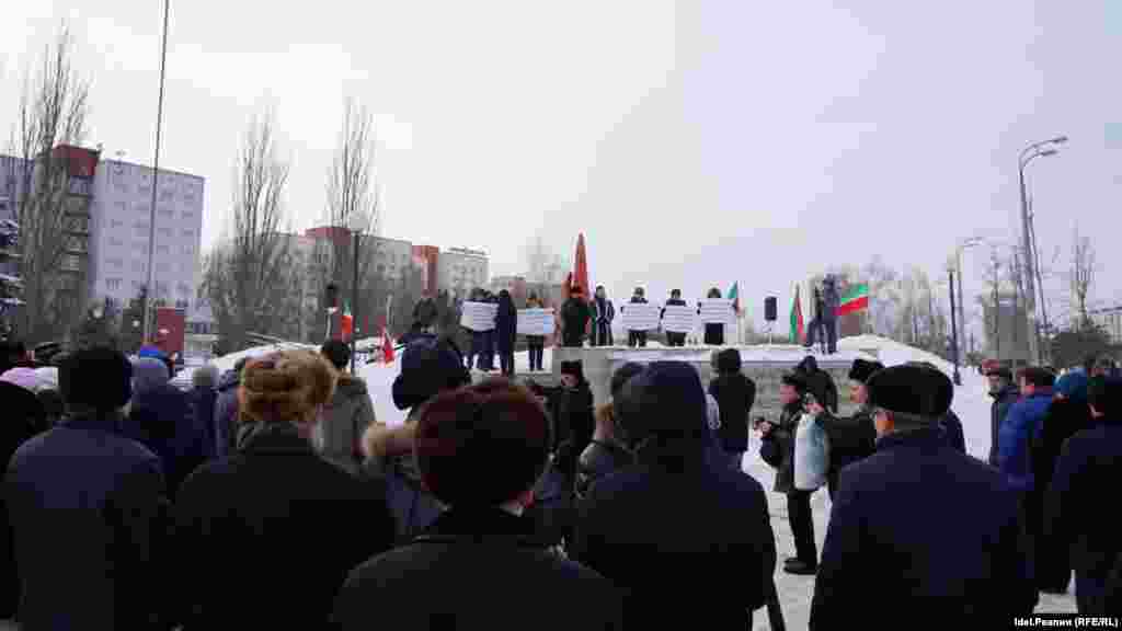 Сегодня, 18 февраля, в Казани вышли на митинг в защиту татарского языка. В акции участвовали около 150 человек. Она состоялась в Сквере Славы возле станции метро "Проспект Победы".