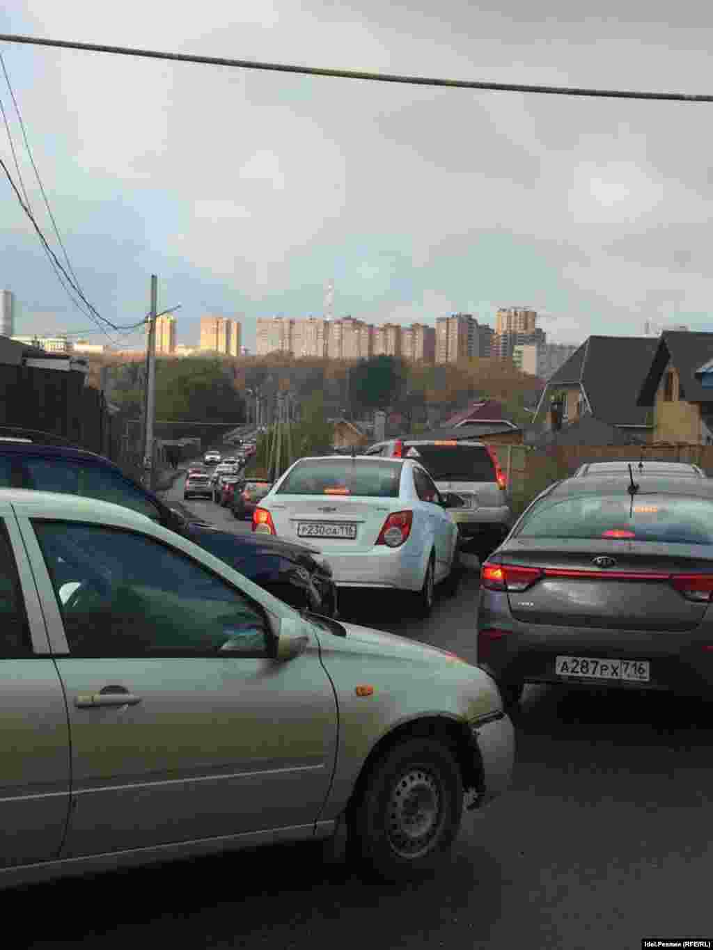 Пробки на въезде в посёлок Вознесение