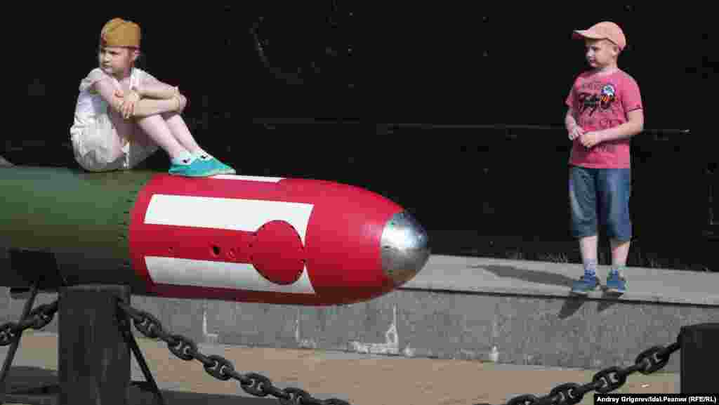 Есть в парке Победы, правда, давно опробованные магниты, которые и в этот раз перетянули на себя большинство посетителей: многочисленная военная техника. Дети — в пилотках и без — оседлали танки, пушки, самолеты. Родители снимают их на смартфоны или, напротив, с негодованием требуют, чтобы не забирались слишком высоко. Из дула ближайшего к выходу парка торчит букетик увядших тюльпанов. Праздник удался.
