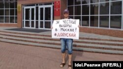 — Мы откровенно возмущены действиями московских властей, которые не допустили к выборам независимых кандидатов, — комментирует "Idel.Реалии" один из участников одиночного пикета Михаил Мерзляков. — Я лично вышел на пикет из чувства солидарности к тем, кто не побоялся и вышел на акцию в столице.