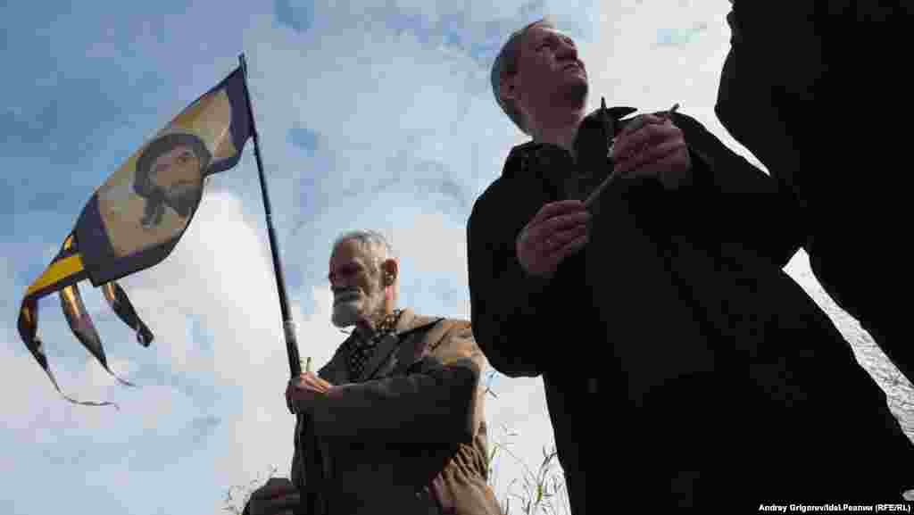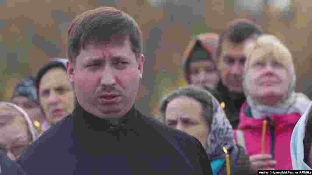 После окончания молитвы небольшая группа верующих во главе с председателем Общества русской культуры РТ Михаилом Щеглов добралась до храма-памятника, на катере, предоставленном МЧС.