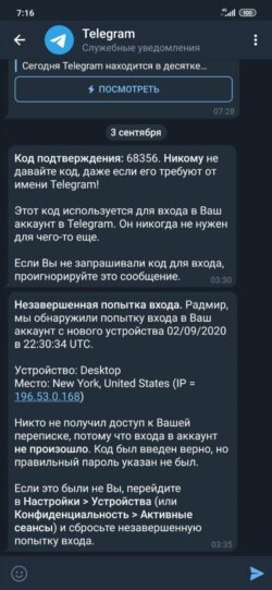 Активист Радмир Мухаметшин также сообщил, что увидел сегодня утром на своем телефоне сообщения о попытках несанкционированного входа в его мессенджеры. По его словам, Telegram пытались взломать в 3:30 ночи по местному времени, а WhatsApp - в 4:25.