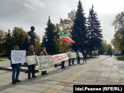 "МСЗ — это оранжевый дождь диоксины и фураны на Казань", Долой радоновый могильник около Крутушки. Радиация уже в Голубых озерах", "Долой технологию мобильной связи 5G", "Против радиационного облучения иловых полей Казани" — с такими плакатами вышли активисты.