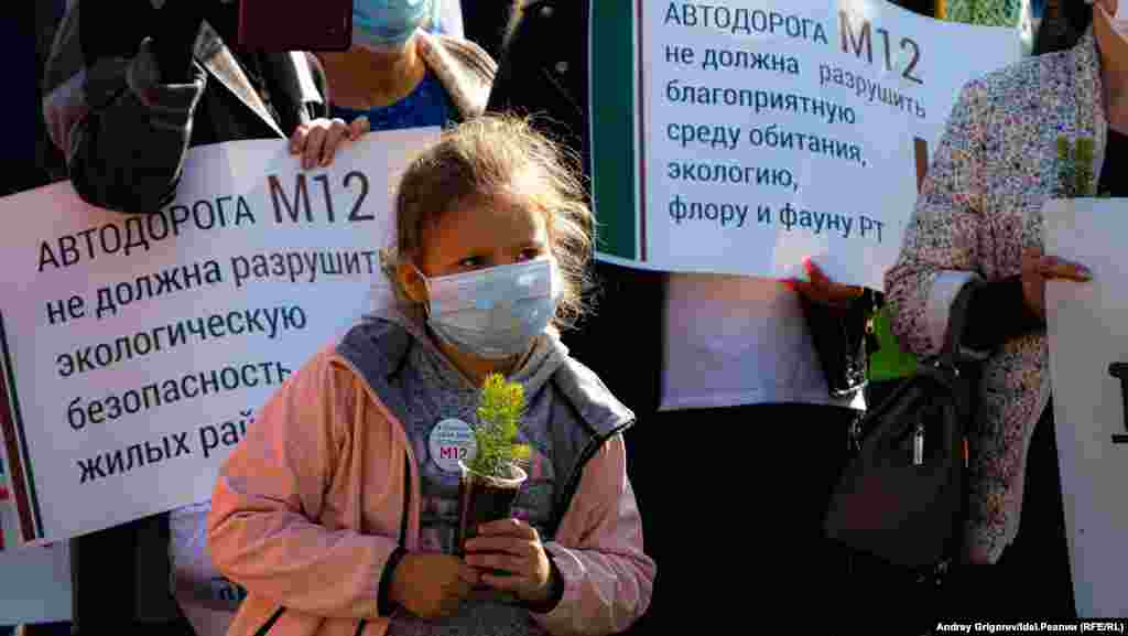 Митинг (его помогла провести ЛДПР) состоялся в сквере Славы на проспекте Победы — в ближайшем к южному выезду из Казани гайд-парке. Собравшиеся — которых, по подсчетам организаторов, было не менее 400 человек — держали в руках горшочки с маленькими сосенками.