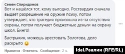 Выступая на военно-научной конференции в Москве сам Бастрыкин выразился так: "Школа (в Казани) не охранялась, хотя был договор об охране. Спрашиваю директрису: "Почему не охраняли школу?" — "Родители были против". — "Почему?" Молчит. А я-то знаю, почему — родители должны были дать деньги на охрану, они отказывались. Охраны не было, хотя договор существовал",— заявил председатель Следственного комитета РФ Александр Бастрыкин. Реакция в соцсетях не заставила себя долго ждать.