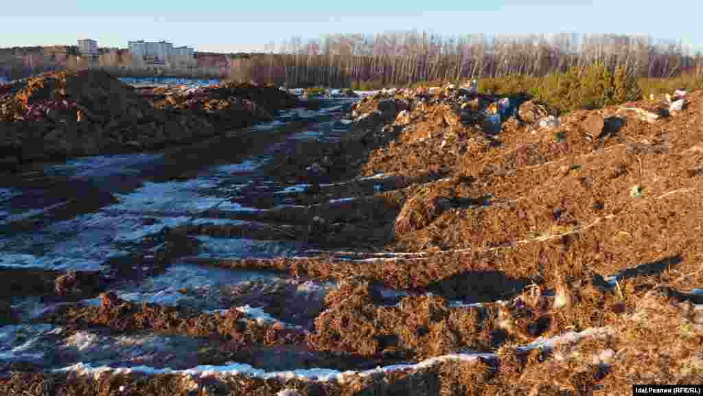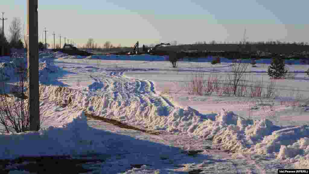 Впрочем, первые вестники беды появились уже тогда, в марте 2021-го. В поле за лесом уже работают экскаваторы (фото №17), плодородный слой почвы с заливных лугов уже снят (оставшиеся три фото). Это ООО "ПСУ" — дочка "Связьинвестнефтехима" (СИНХ), холдинга, принадлежащего Татарстану — уже готовит почву для строительства гольф-клуба. Размахнулись настолько широко, что земельного участка не хватило — так что искусственную сушу сейчас создают прямо на месте Волги.