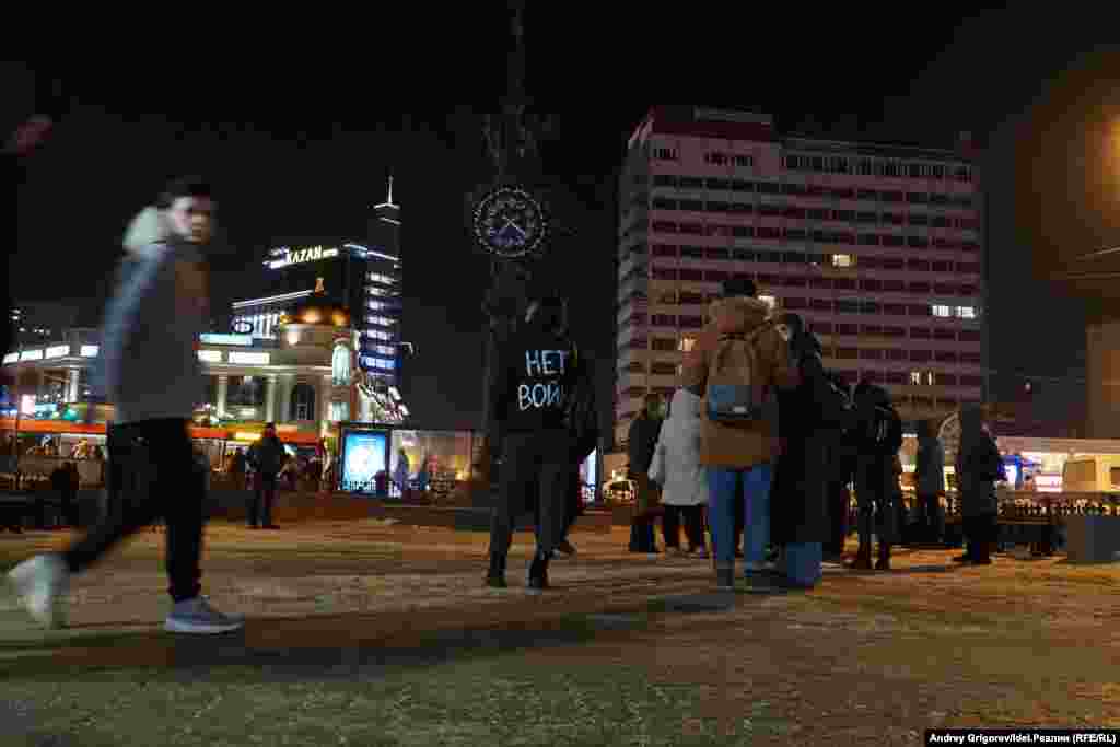 Во вторник, 1 марта, протестующие против войны в Украине казанцы вновь вышли на улицу Баумана. Собралась одна молодёжь, компания из двух десятков человек, в основном — девушки.