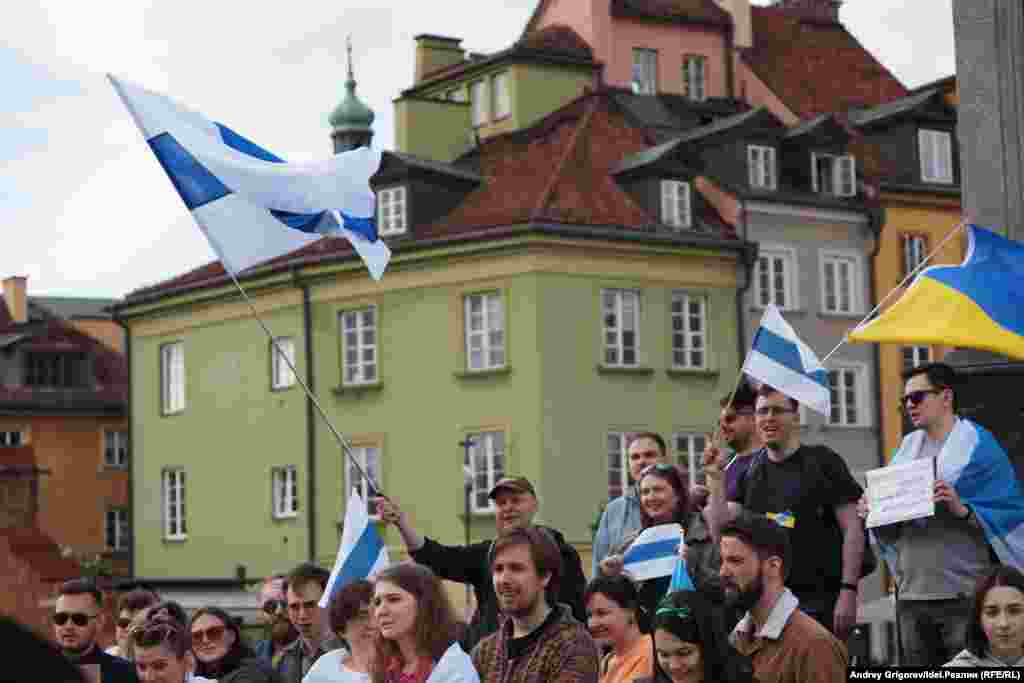 Представители российской диаспоры в Варшаве собрались 8 мая на Замковой площади, чтобы почтить память погибших в борьбе за демократию в РФ и павших на войне в Украине. Акция, по словам организаторов, была проведена "в противовес путинскому параду".