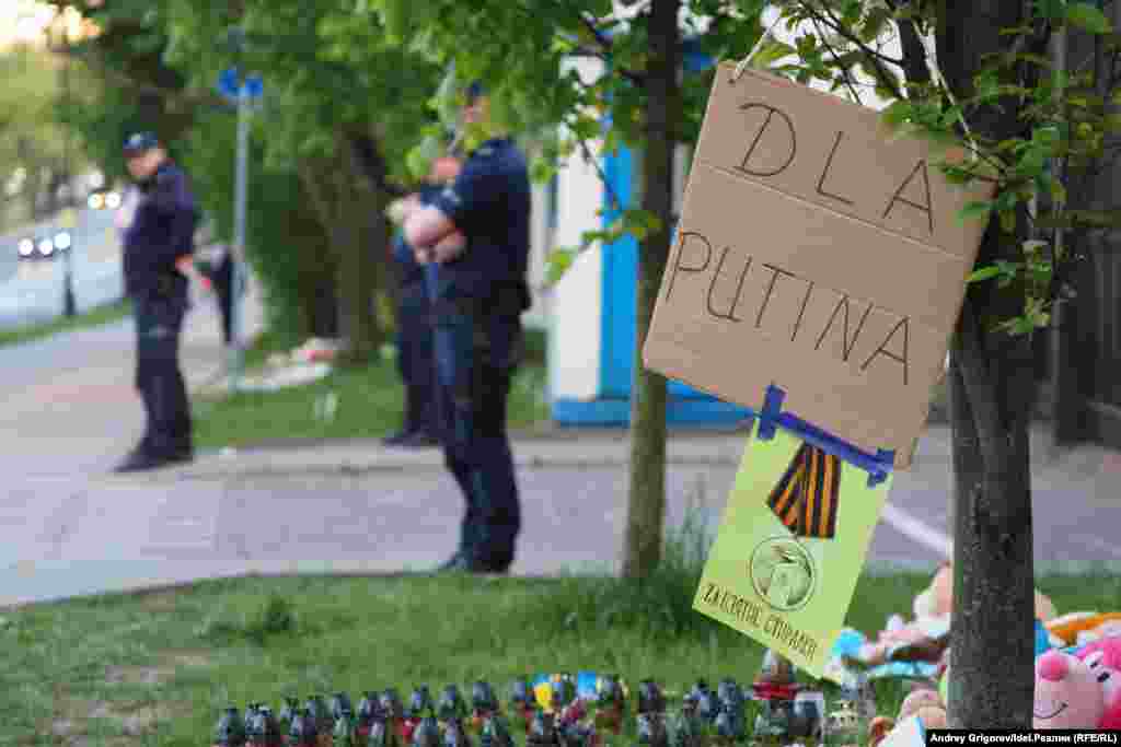 Около двух десятков человек, состоявших главным образом из россиян, собралось вечером 9 мая у посольства РФ в Варшаве, чтобы осудить начатую Россией войну с Украиной.