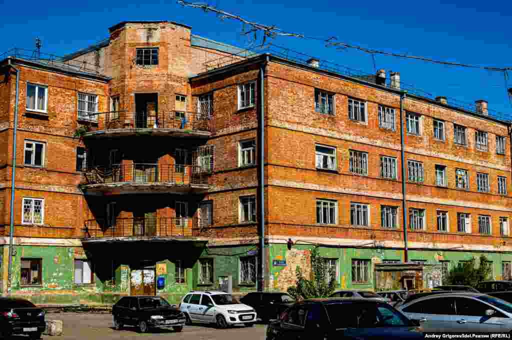 Бывшее общежитие завода обозных деталей на Мало-Московской, 30/13 тоже успели последовательно признать и градоформирующим историческим объектом (2017-й), и аварийным зданием (2018 год). Внутри обшарпанное здание выглядит ещё хуже: щели, штукатурка со стен и потолка отваливается кусками. «Удобства», кстати, расположены в дворе здания.