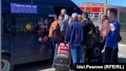 — Пенсионеры уже приготовились, — делится одна женщина со своей знакомой. Они тоже встраиваются в образовавшуюся очередь на посадку. Обмениваются мнениями, что, наверное, не зря пришли сюда — на остановках в центре города желающих попасть на рейс будет гораздо больше, не факт, что удалось бы втиснуться в автобус.