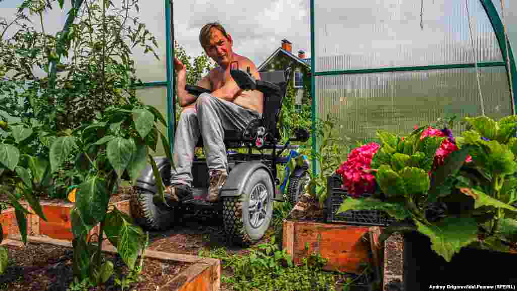 Казанец Антон Кайнов прикован к инвалидной коляске, но это не мешает ему самостоятельно справляться с многочисленными обязанностями по дому. Он живёт в частном доме в казанском посёлке Малые Клыки с большим огородом на заднем дворе и самостоятельно поливает овощи, пропалывает грядки и ухаживает за кустарниками. Правда, в прошлые годы (а снимки относятся к 2019-2020 гг.) делать ему это было намного легче, поскольку он передвигался на дорогих колясках, одну из которых он получил от президента РТ Рустама Минниханова после нескольких месяцев обивания порогов. Но те коляски уже вышли из строя на казанских дорогах, а на тех, которыми инвалидов обеспечивает соцстрах, особо не развернёшься. В конце августа коляска опрокинулась вместе с Антоном, когда он поливал огород. В итоге инвалид почти час пролежал на сырой земле, а теперь хочет засудить чиновников из Фонда социального страхования.