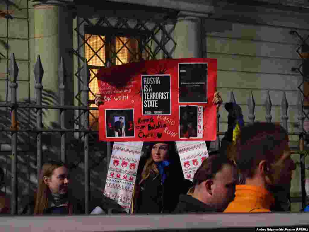 "Россия — террорист": польско-украинский митинг у посольства РФ в Варшаве