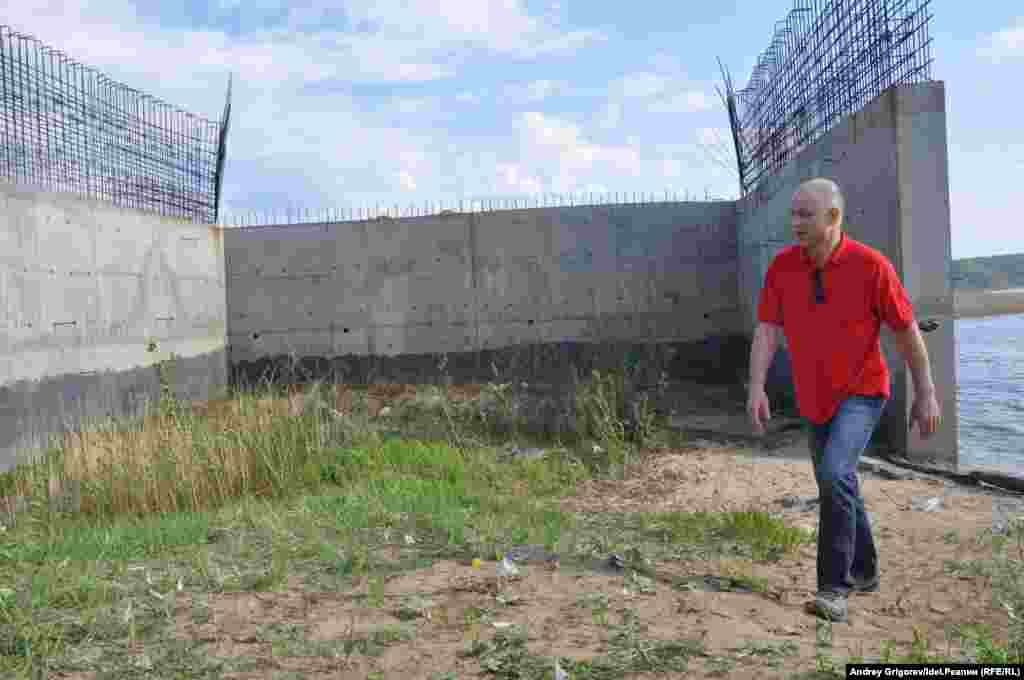 Перед вами уникальные кадры 2015 года: чиновники Минэкологии Татарстана вместе с экоактивистами и жителями Займища обследуют земельные участки, намытые на Волге структурами олигарха Равиля Зиганшина. Можно заметить, что новая суша возвышается над водой на несколько метров. Причем рабочие уже успели частично уложить коммуникации (например, торчащую из бархана трубу на заглавном фото) и установить несколько опор будущего моста.