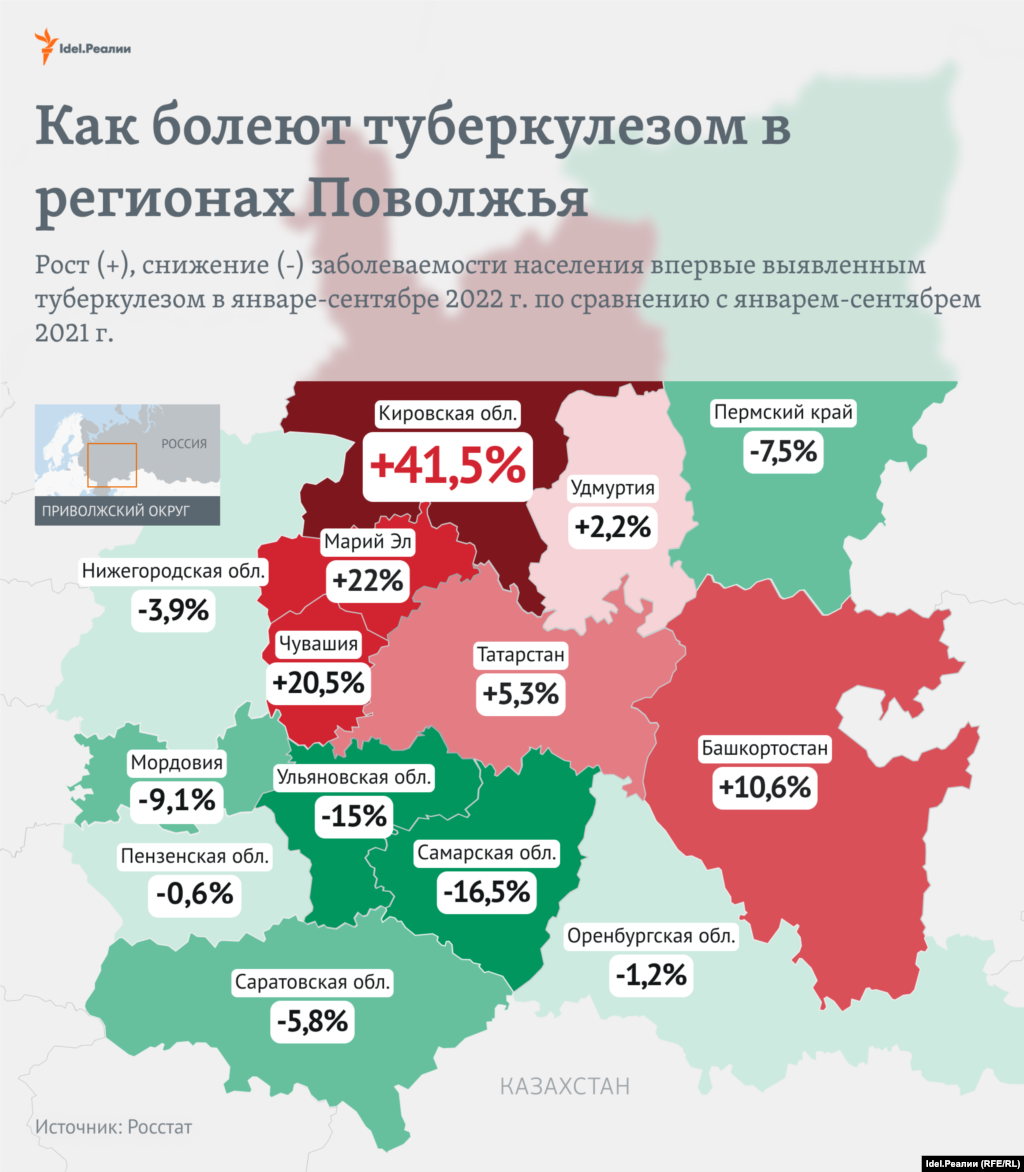 24 марта — День борьбы с туберкулезом. "Idel.Реалии" составили карту заболеваемости в регионах Поволжья