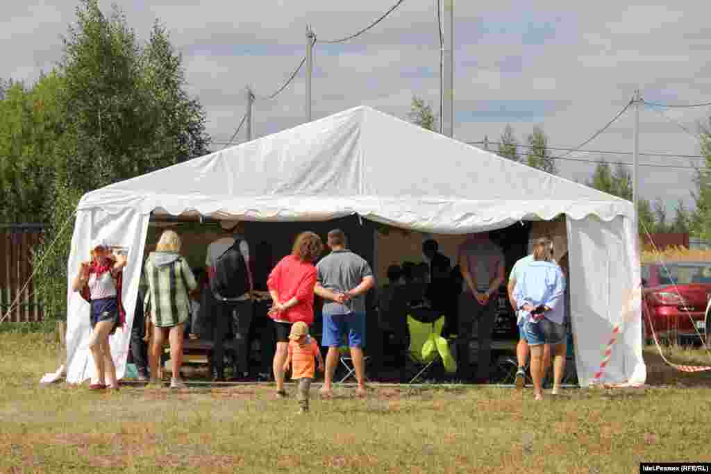 На участке семьи Григорьевых, где проходил марийский баркемп, — жилой дом-бочка, баня, блочный сарай, загон для кур, несколько грядок и много свободного места. В березовой роще за баней разместился палаточный городок участников — здесь они провели весь уикенд с пятницы по воскресенье. У строящегося сарая — сцена (откуда делались объявления о всех важных событиях и где выступали музыканты). И три палатки для собственно "Пикника на обочине" как площадки для выступлений активистов, экспертов и дискуссий. Тема 2023 года, ее инициативная группа обсуждала с весны — "Возвращение к человечности".