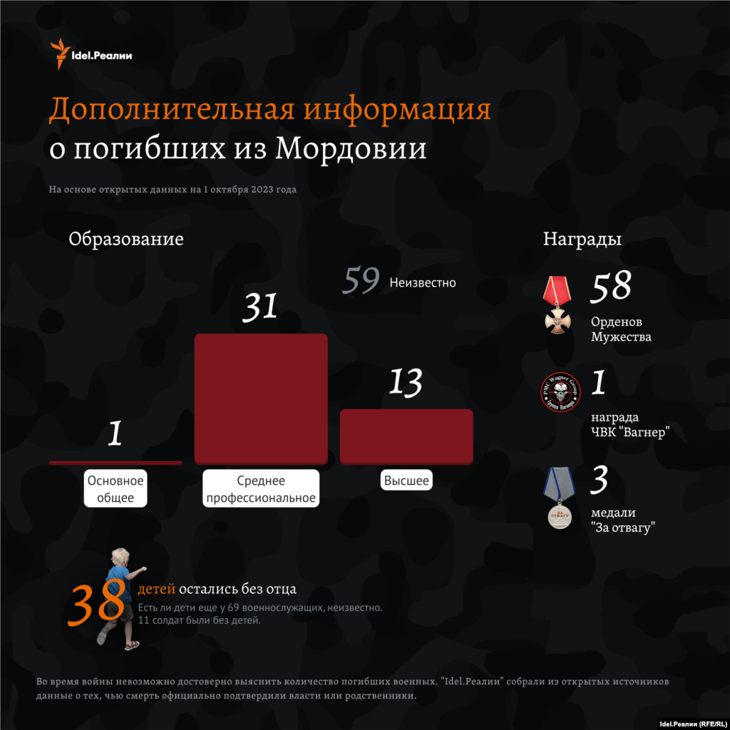 Из общего числа погибших 32 человека числились контрактниками — это те, кто находились в составе действующей армии страны на момент начала войны в Украине (24 февраля 2022 года) или подписали официальный контракт с Министерством обороны России уже после ее начала. Они служили в регулярной армии. Еще 10 человек были наемниками ЧВК "Вагнер"; 17 — мобилизованными; 4 — добровольцами.