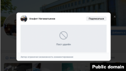 Публикация была удалена не только со страницы Нигаматьянова во "ВКонтакте", но и из раздела "Новости депутата" на сайте Госсобрания Башкортостана.