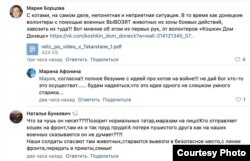 В комментариях под трансляцией пользователи возмутились отправкой животных на фронт. Они напомнили, что донецкие волонтёры в это же время с помощью военных наоборот вывозят животных из зоны боевых действий.