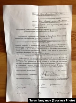 В постановлении, которое вручили Ибрагимову 18 января 2020 года на админгранице Крыма с Херсонской областью сказано, что ему запретили въезд в Россию и Крым до конца мая 2054 года. По словам, журналиста все проходило вежливо, но внятного объяснения, с чем связан запрет, нет ни в постановлении, ни в устном объяснении.