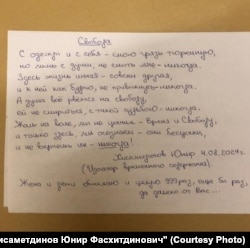 Из первого письма Юнира Хисаметдинова жене, 9 февраля 2024 года: