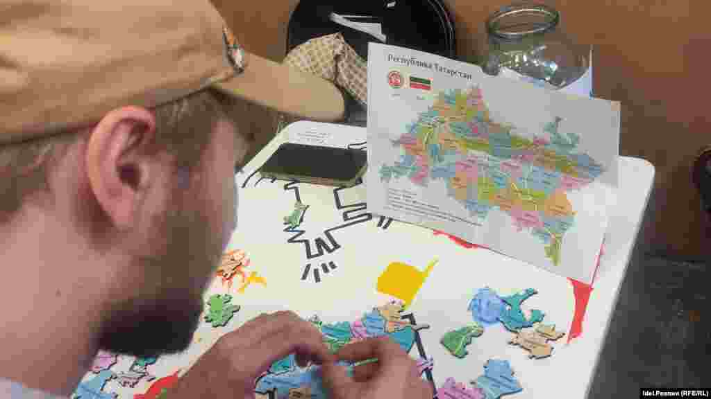 Желающие собирали на скорость из пазлов карты Татарстана, Башкортостана и Удмуртии.